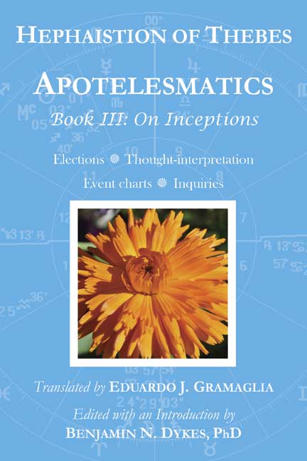 Hephaistion of Thebes’ Apotelesmatics (5th Century AD) is an important record of ancient doctrines on general principles, natal, and electional astrology, largely drawn from the work of Ptolemy and Dorotheus.