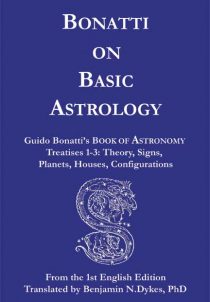 A large work on mundane astrology: discovering the Lord of the Year and the significator of the king, the condition of the people, assigning zodiacal degrees to regions of the world, weather and natural disasters, war, comets, eclipses, fixed stars, the Head and Tail of the Dragon. Click here for a PDF excerpt .
